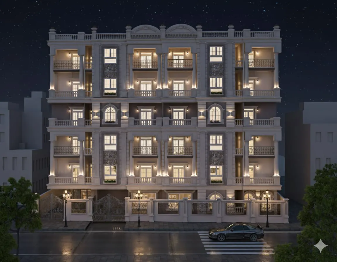 مبنى مستقل بمساحة 1200 متر مربع يوفر 9 شقق تتراوح مساحتها من 105 متر مربع إلى 190 متر مربع. يبدأ السعر النقدي من 18,000 جنيه مصري للمتر المربع، مع خطط تقسيط حتى 18 شهرًا. 50% دفعة أولى والباقي بالتقسيط. يشمل التصميم: الدور الأرضي تجاري، والدور الأول إداري، والثاني والثالث سكني، والرابع والخامس وروف على الطراز الفندقي بسعر 25,000 جنيه مصري للمتر المربع.